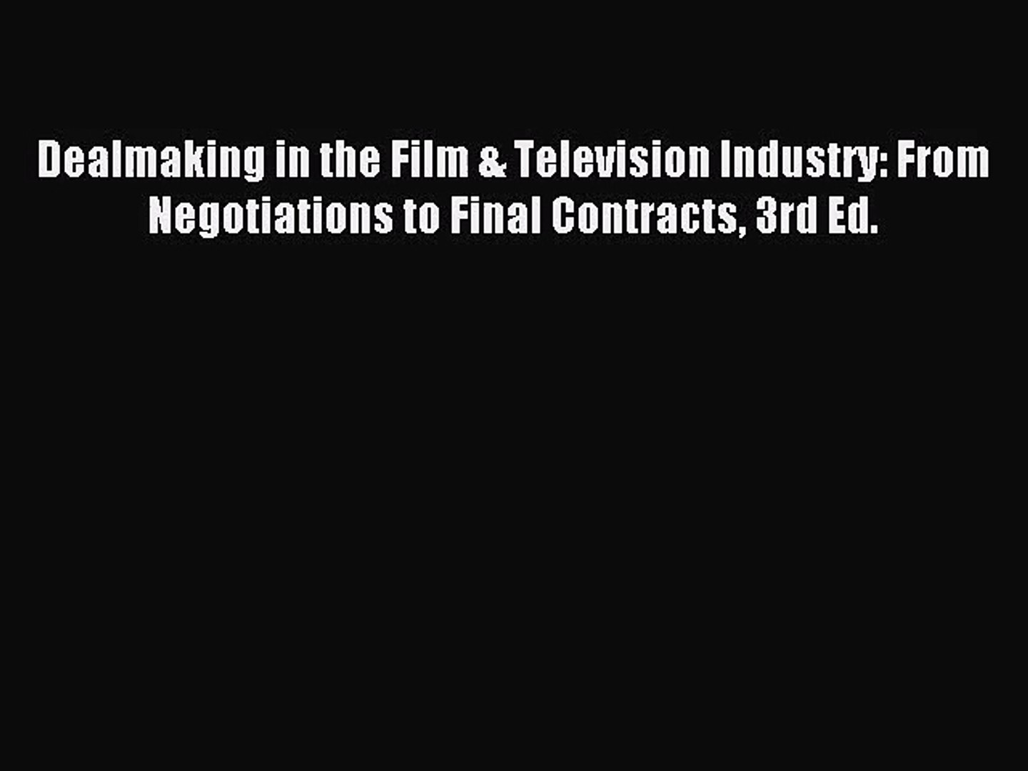 P D F Dealmaking In Film Television Industry 4rd Edition