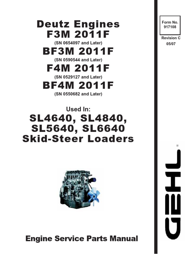 Sl4640 Sl4840 Sl5640 Sl6640 Skid Loader Deutz Engine Parts Manual