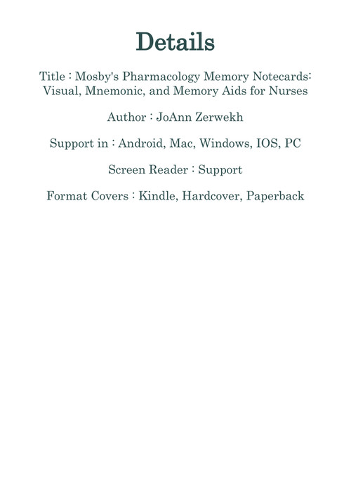 Pdf Mosby S Pharmacology Memory Notecards Visual Mnemonic And