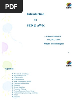 The most common operation done with sed is substitution replacing one block of text with anotherawk is a. Sed awk describes two text processing programs that are mainstays of the unix programmers toolboxsed is a stream editor for editing streams of text that might be too large to edit as a single file or that might be generated on the fly as part of a larger data processing step. Find helpful customer reviews and review ratings for sed awk. Sed awk describes two text processing programs that are mainstays of the unix programmers toolbox.