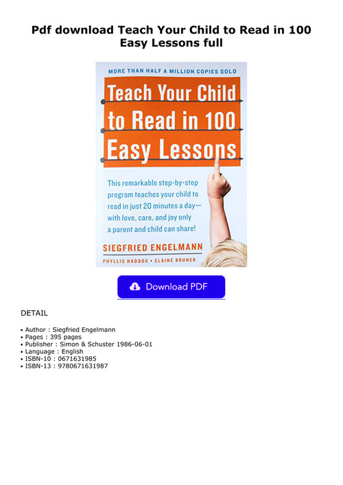 Pdf Download Teach Your Child To Read In 100 Easy Lessons Ebook