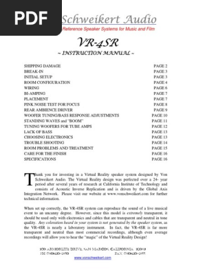 Von Schweikert Vr 4 Sr Owners Manual Loudspeaker Amplifier