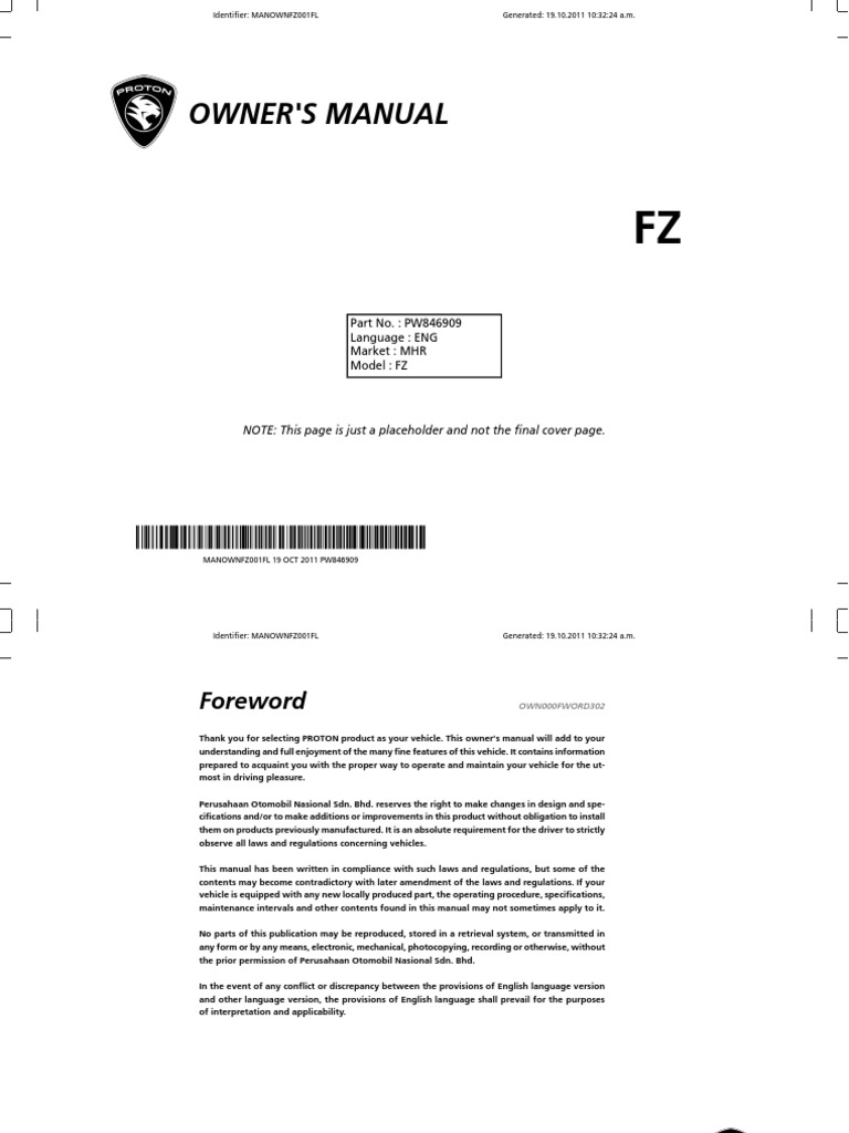 Owner S Manual Exora Pdf Trunk Car Vehicles