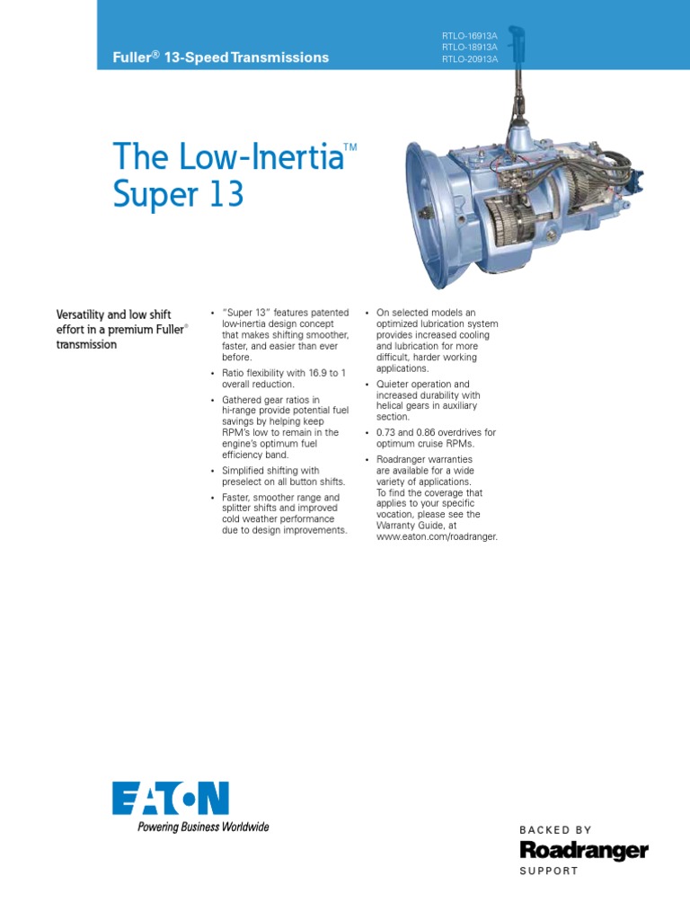 12052012 916 kb rtlof 16713a t2. Rtlo 16913a rtlo 18913a rtlo 20913a rt 13 features patented low inertia design concept that makes shifting smoother faster and easier than ever before. Box 4013 kalamazoo mi 49003. View online or download eaton rtlo 14913a installation manual.