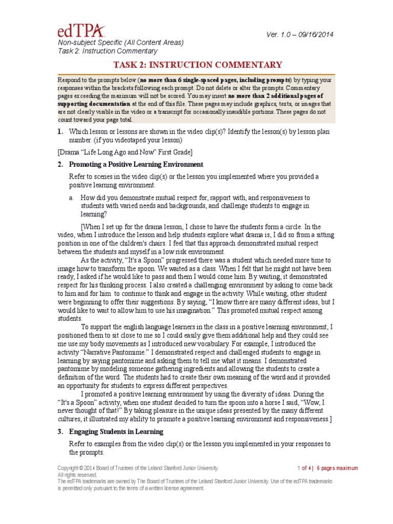 Use of the edtpa trademarks is permitted only pursuant to the terms of a written license agreement. When reading through instruction task 2 make a note on. It is based on findings that. Read task ii as well as the evidence chart in the edtpa handbook prior to recording the focus of the video is the interaction between instructor and students so both must be clearly understandable in the recording.