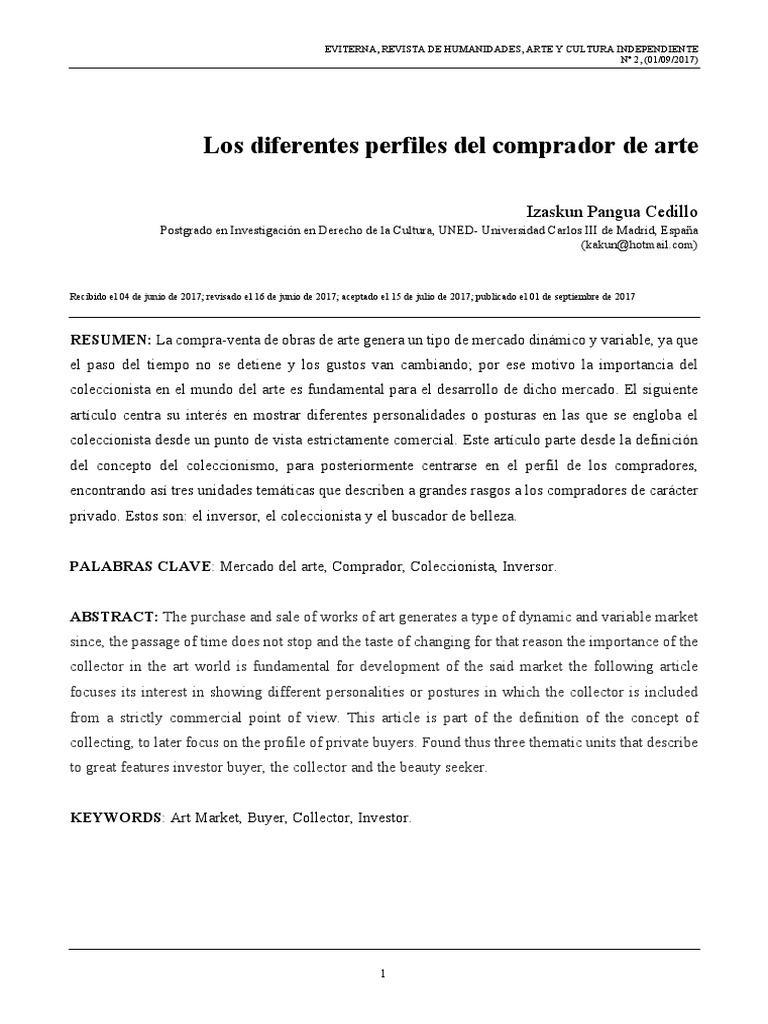 El mercado del arte frente al coleccionista m findlay web pdf. Un coleccionista puede tener tres motivos para serlo. Tanto el espectador como el coleccionista o consumidor de arte ejerce hoy un papel que crea cierta controversia pues el artista actual ante el mercado globalizado depende del cliente y si no responde a la demanda del mercado corre el riesgo de quedar relegado. El agape de coleccionar. A lo largo de los anos se han creado estramboticas colecciones por personajes curiosos apasionados y obsesionados.