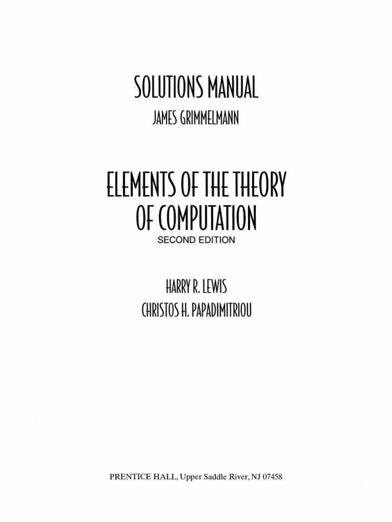Elements of the theory of computation solution manual pdf. Elements of the theory of computation second edition by harry lewis and christos papadimitriou prentice hall 1998. 2nd ed elements of the theory of computation lewis and papadimitriou. Request for the book solutions manual. Download free sample here.