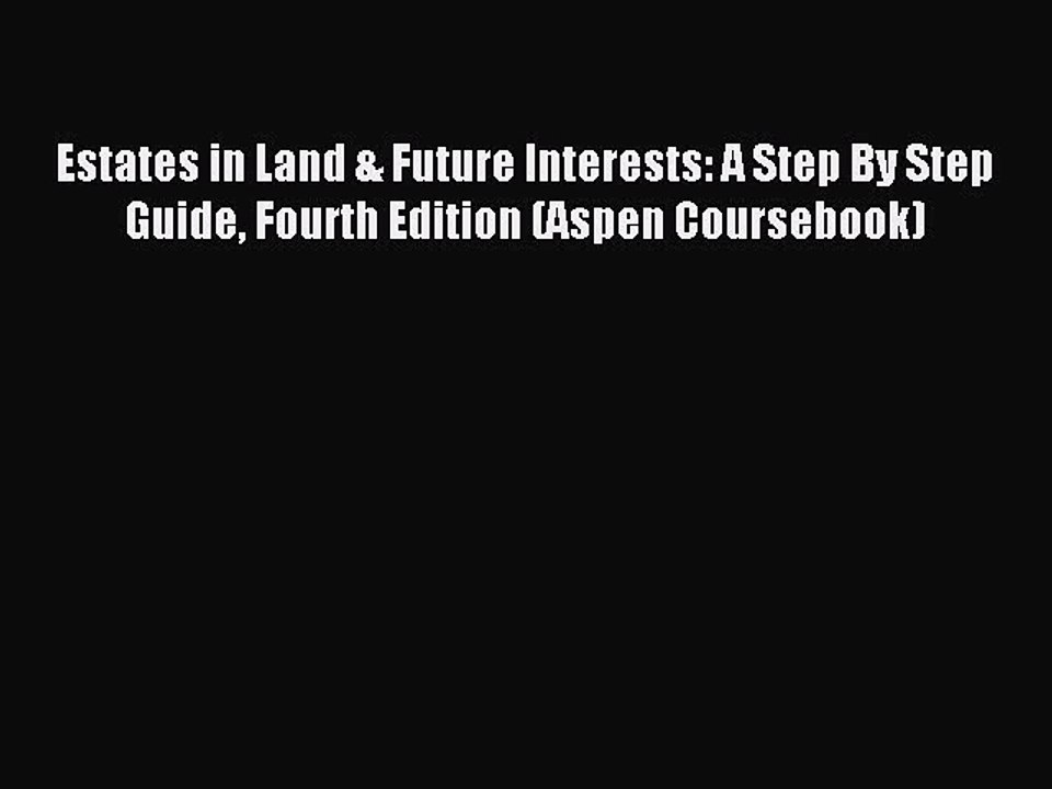 Estates In Land And Future Interests A Step By Step Guide Coursebook Pdf
