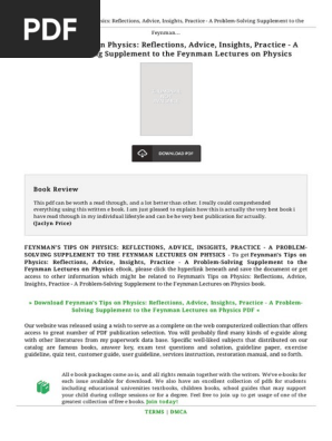 Feynmans tips on physics pdf. Feynman lectures on computation. Download feynman lectures on computation pdf ebook feynman lectures on computation feynman lectures on computation eboo. With characteristic flair insight and humor feynman discusses topics physics students often struggle with and offers valuable tips on addressing them. Gottlieb and ralph leighton.